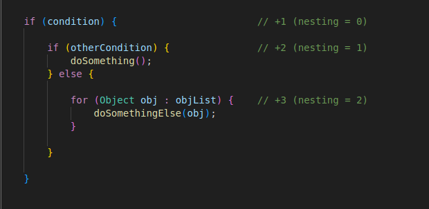3. Erhöhe die Komplexität zusätzlich für jede Verschachtelungsebene (nesting score)
